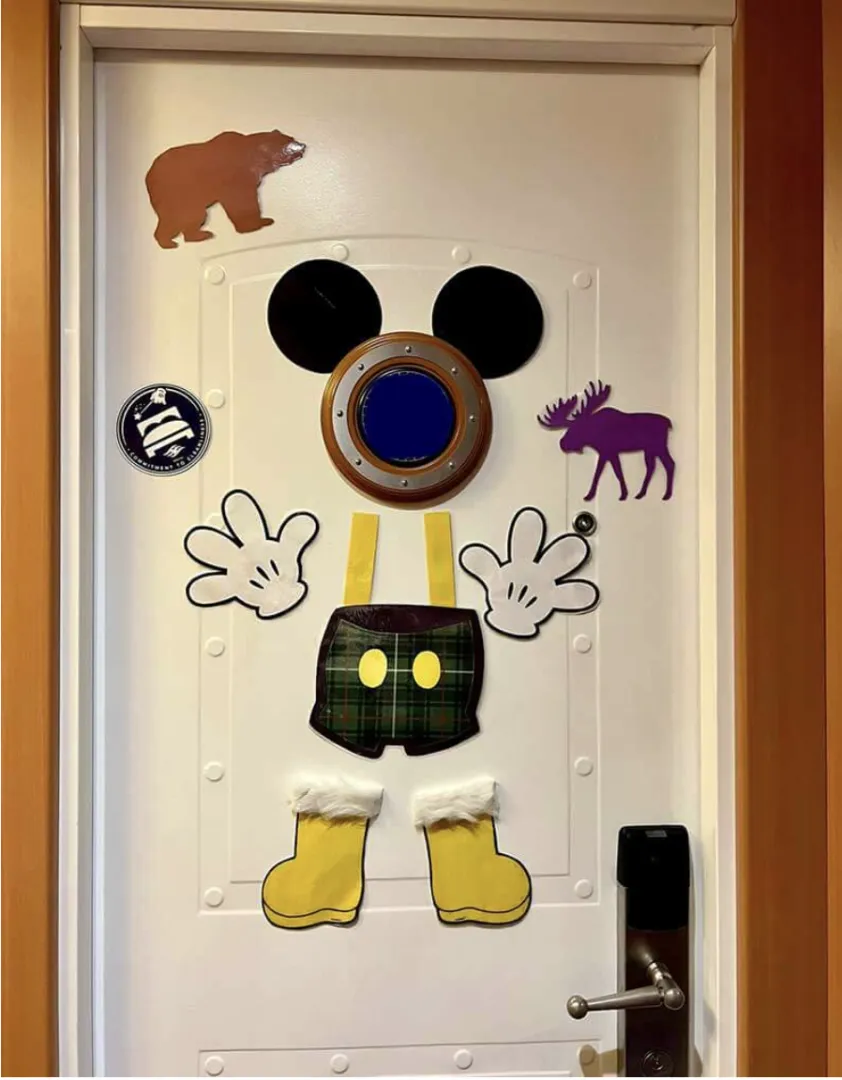 Em todos Cruzeiro disney, você pode levar consigo ímãs para personalizar a porta da sua cabine da maneira que preferir! A Disney autoriza os hóspedes a utilizarem da criativdade, desde que não obstrua a saída de emergência e que siga os padrões de decoração para famílias. Entretanto, um Cruzeiro no Alasca merece uma decoração especial, né? Um exemplo ao lado super fofo para inspiração com um Mickey característico de lá.