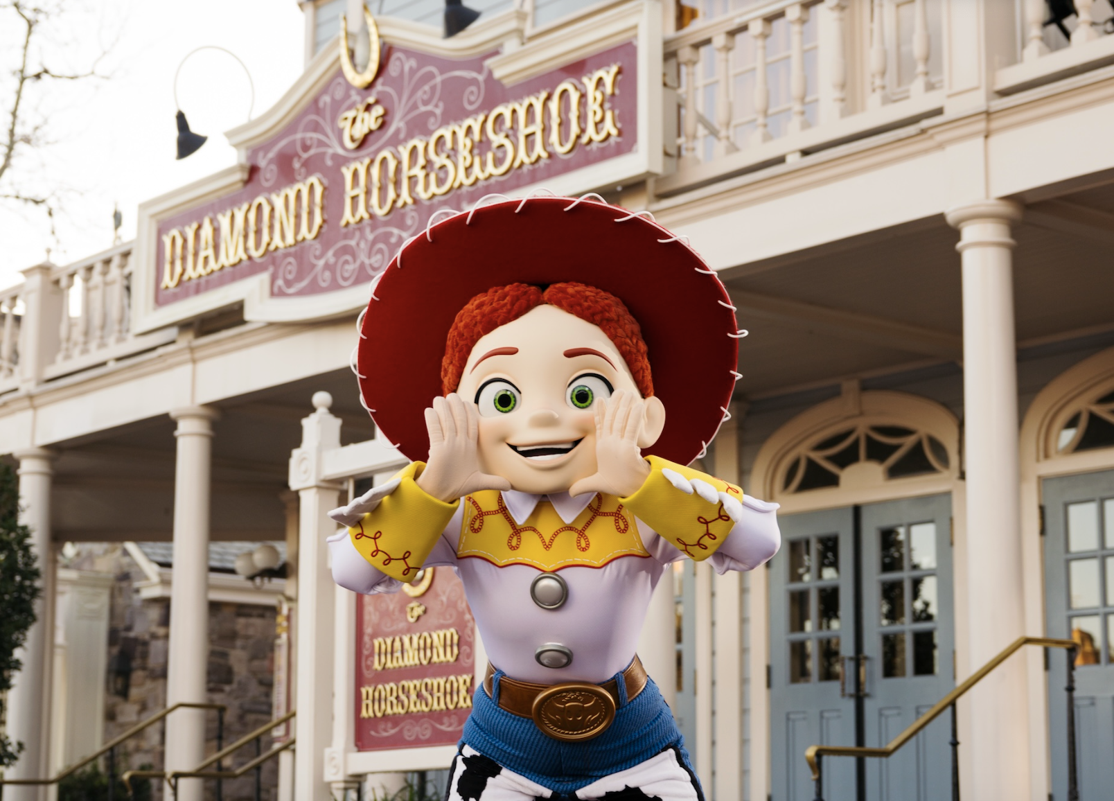 No Magic Kingdom, o Diamond Horseshoe recebe uma festa de Toy Story neste verão, com Jessie, Woody, Bullseye e amigos — incluindo música, dança e brincadeiras para as crianças.