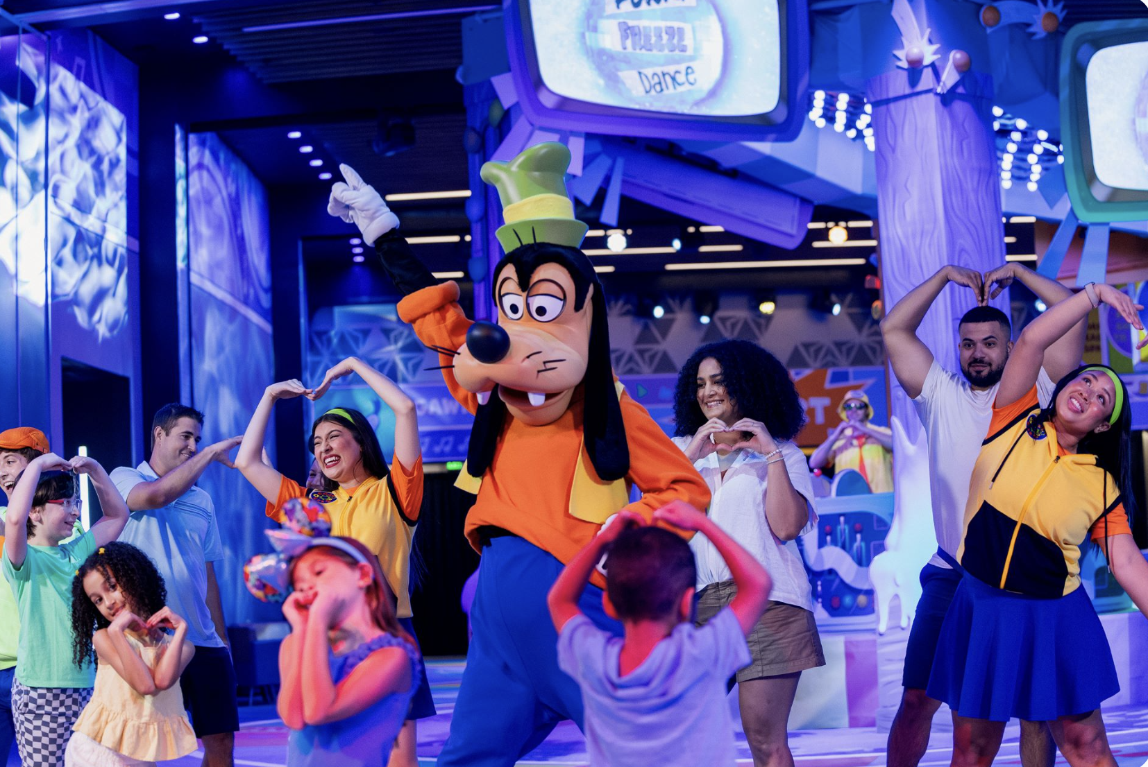 No EPCOT, o CommuniCore Hall vira palco de diversão com o Pateta, a turma e o DJ Dance Pants, com música, dança e jogos como “Goofy Says”, “Balloon Bonanza” e “Parachutes ‘n’ Pipsqueaks”.
