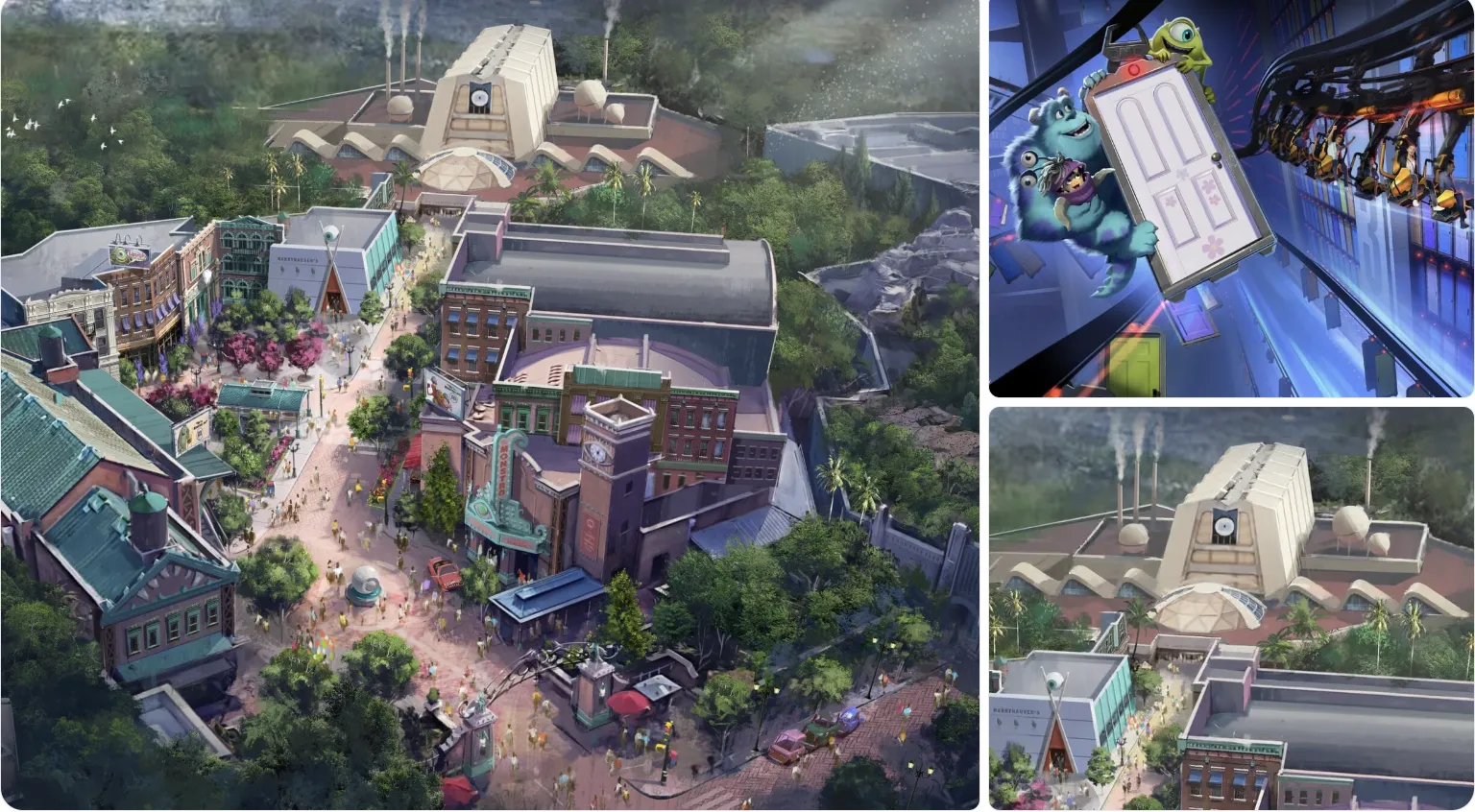 A nova área, chamada Monstropolis, será inspirada no universo da Monsters, Inc., e ocupará o espaço antes conhecido como Muppets Courtyard. O grande destaque será a montanha-russa Doors Coaster — uma montanha-russa suspensa, com elevação vertical e inspirado diretamente no momento do filme em que portas voam pelo depósito onde Sulley e Mike trabalham.