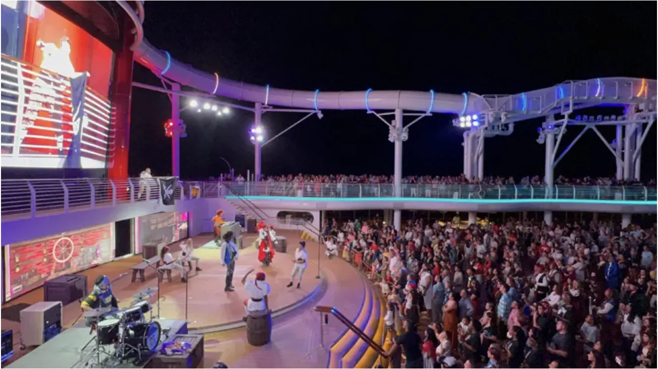 Cada navio da Disney tem um jeitinho próprio de celebrar. No Disney Wish, a festa leva o nome de “Pirates Rockin’ Parlay Party”, com shows ao vivo, efeitos especiais e aparições ilustres como o Capitão Jack Sparrow e o Capitão Redd. Mas todos têm algo em comum: muita música, dança e aquela energia contagiante que só a Disney entrega.