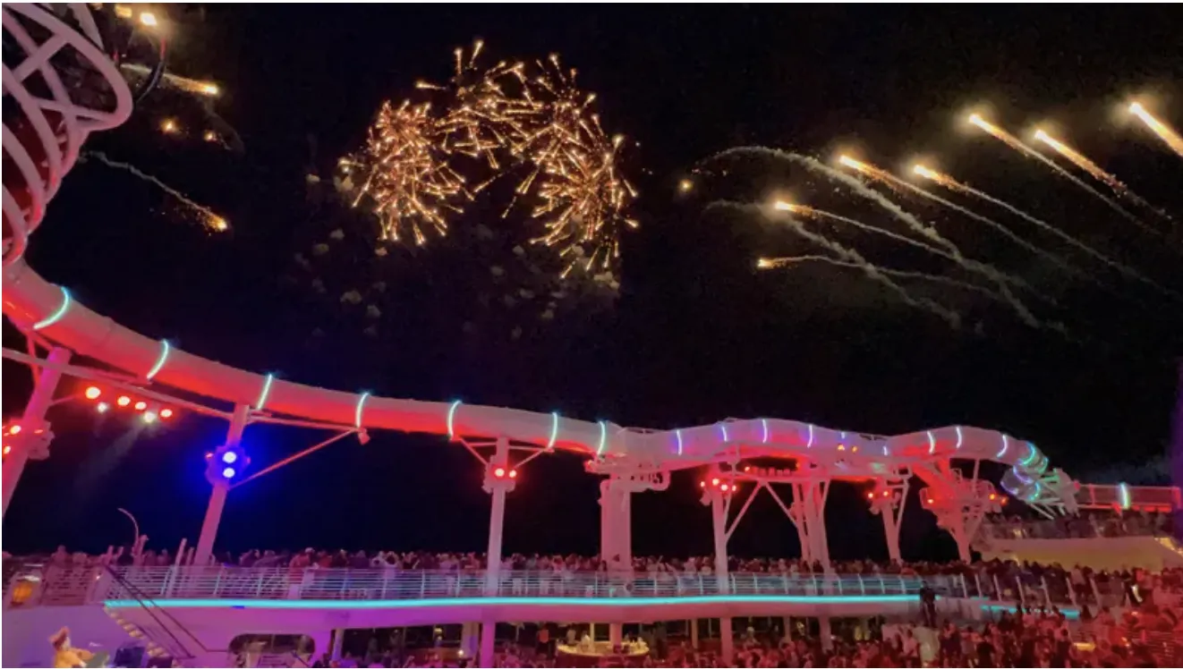 O grande momento da noite é, sem dúvida, o show de fogos. A Disney Cruise Line é a única companhia autorizada a soltar fogos de artifício no oceano, e assistir ao espetáculo com o reflexo no mar é simplesmente inesquecível.