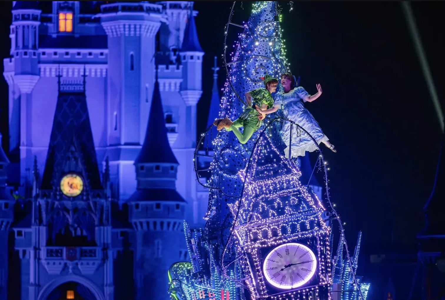 Durante uma apresentação recente da Disney Starlight: Dream the Night Away, os personagens Peter Pan e Wendy Darling voaram pela primeira vez sobre o público no Magic Kingdom — um momento que os fãs aguardavam desde a estreia do desfile.