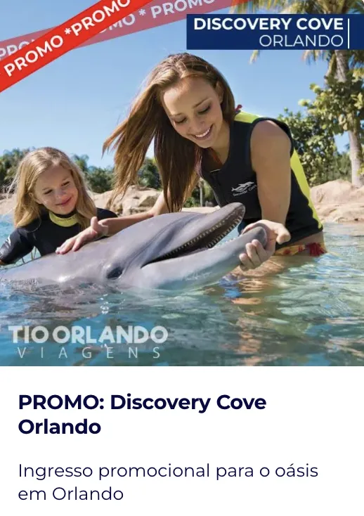 Se você pensa em parques em Orlando, provavelmente imagina montanhas-russas e filas enormes. Mas existe um lugar completamente diferente: o Discovery Cove, um parque com conceito de resort tropical all-inclusive, onde o foco é relaxar, nadar e ter experiências únicas com animais marinhos. Temos um post com todos os detalhes do parque aqui.