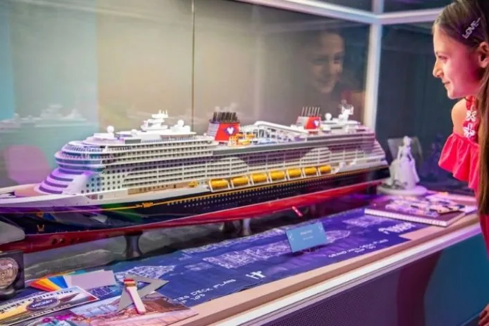 No Disney Wish, a inspiração para a decoração do navio foi em torno da magia e encantamento de um castelo de contos de fadas. Na popa, Rapunzel e seu fiel companheiro Pascal aparecem finalizando os detalhes da pintura “Disney Wish”, deixando a assinatura artística na parte traseira da embarcação.