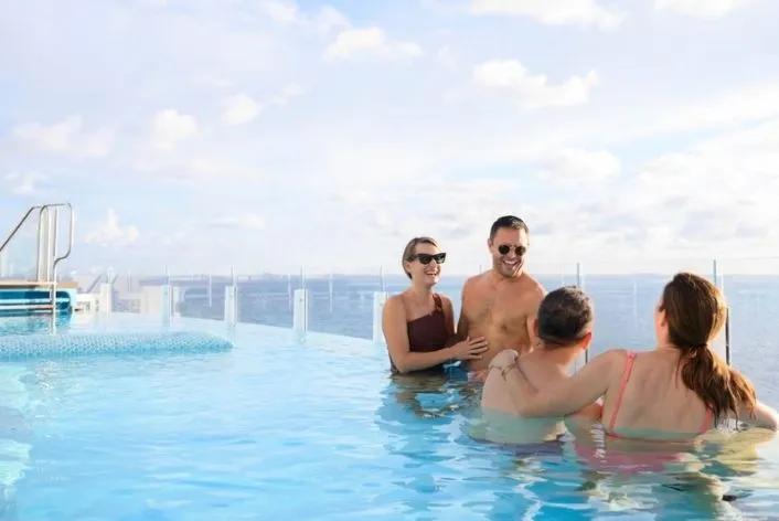 As cabines não Concierge mais espaçosas contam com metragem generosa e varanda privativa, ideal para apreciar o ar fresco e a vista para o mar.