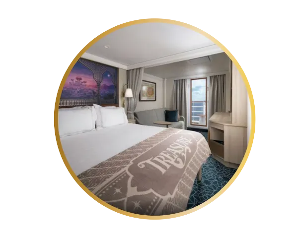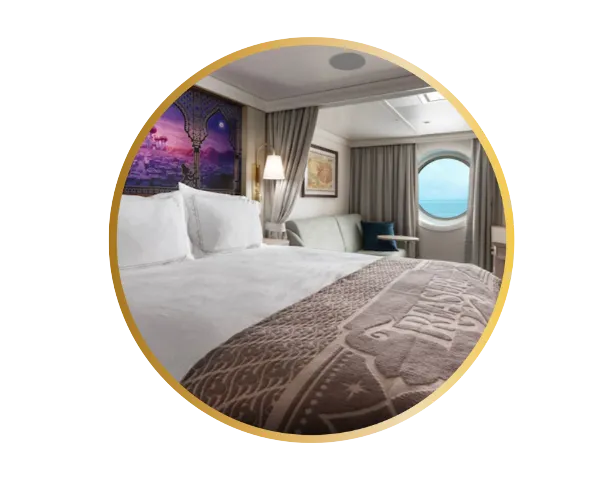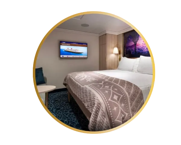 Com metragem mais generosa do que a oferecida por cabines equivalentes na maioria dos navios de cruzeiro, a acomodação Standard se destaca pelo conforto ampliado e pelos detalhes discretos que trazem a magia da narrativa Disney ao ambiente.