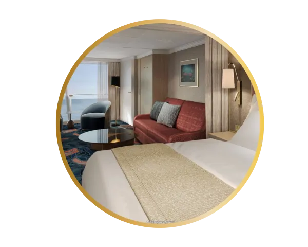 As cabines e suítes Concierge representam o mais alto nível de conforto a bordo, reunindo acomodações sofisticadas e uma série de serviços e comodidades exclusivas.