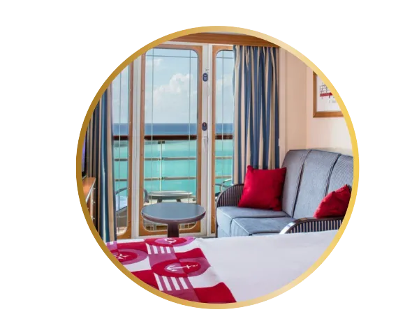 Entre as opções que não fazem parte da categoria Concierge, essas são as cabines mais amplas disponíveis. Elas contam com uma varanda privativa, perfeita para relaxar, sentir a brisa do oceano e apreciar a paisagem durante a viagem.