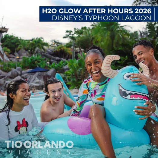 ✨ Curta uma noite refrescante e cheia de energia no parque aquático da Disney como nunca antes! No H2O Glow After Hours no Disney’s Typhoon Lagoon, você aproveita o parque aquático após o fechamento ao público geral, com acesso exclusivo, filas reduzidas e uma atmosfera vibrante iluminada por luzes neon e muita música! 🎶 O evento conta com DJs ao vivo, festas animadas e interações especiais com personagens Disney em versões exclusivas, criando uma experiência única, e durante a noite, estão incluídos snacks e bebidas selecionadas, como sorvetes, pipoca e refrigerantes, ideais para recarregar as energias entre uma atração e outra 🌙 Com ingressos limitados e datas selecionadas, o H2O Glow After Hours é a escolha perfeita para quem quer unir diversão, conforto e uma vibe totalmente diferente dentro da Disney: